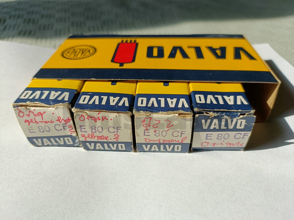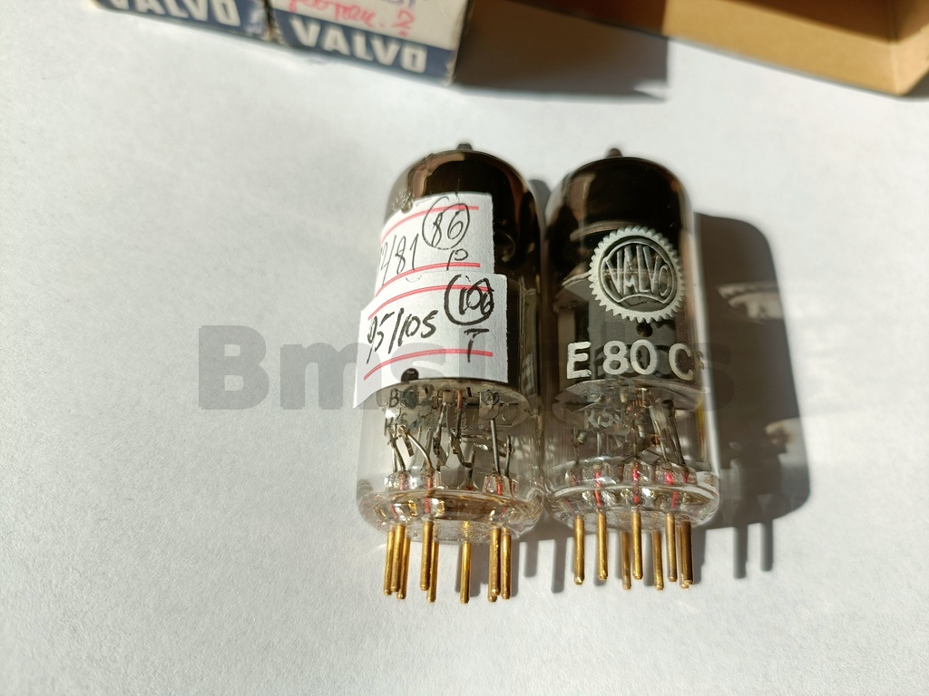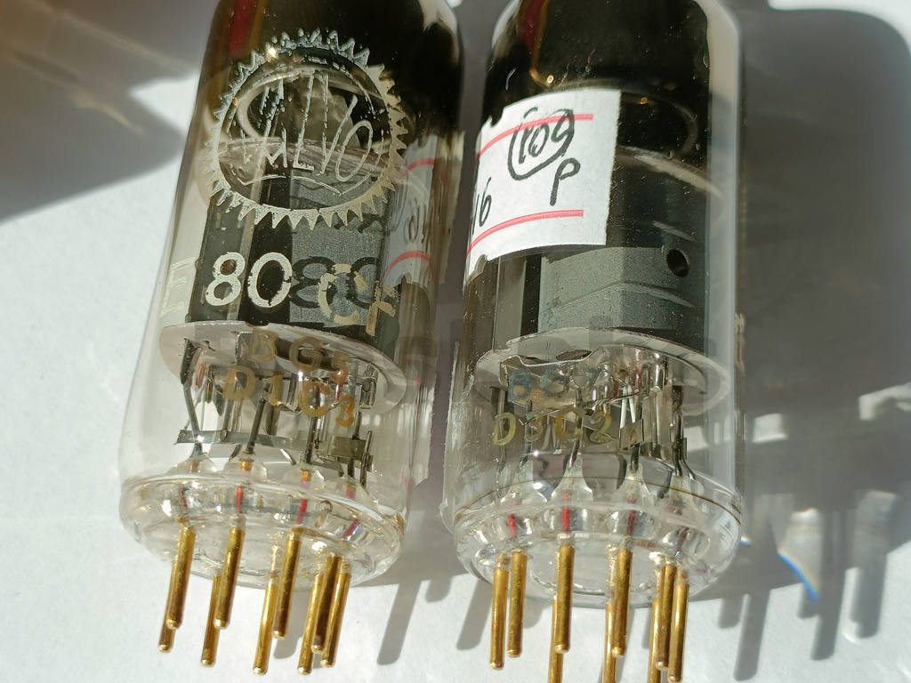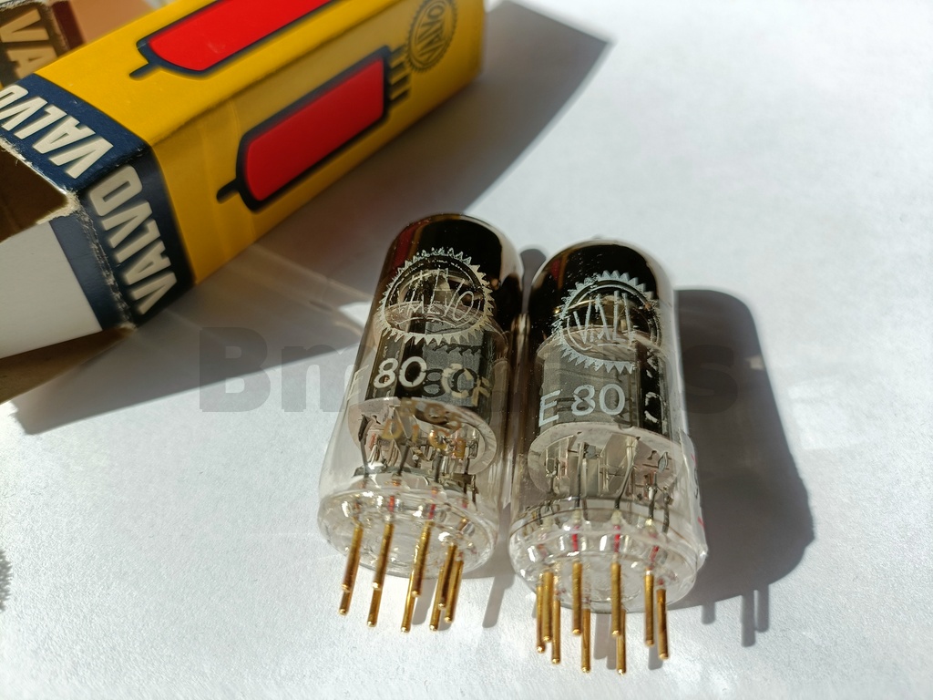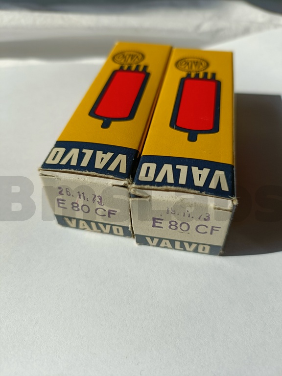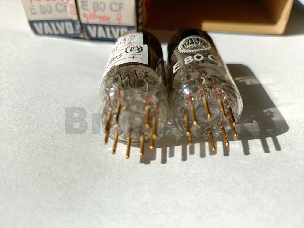 The E80CF is a special quality triode pentode designed to withstand vibration in service. The pentode is aimed at mixer or RF or AF amplifier applications. The triode is designed for use as an oscillator at up to 300 MHz. Additionally the valve is designed to withstand long periods in cut-off - useful for computer applications.